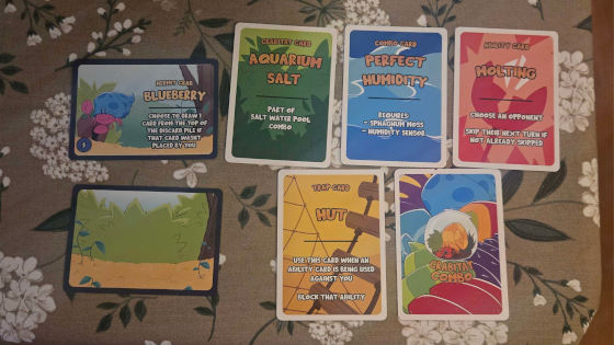 The original design used a point-based system, where players earned points by placing habitat item cards and forming matching combos. Action cards added interaction by allowing players to disrupt others. This foundation established the game’s competitive and social nature.