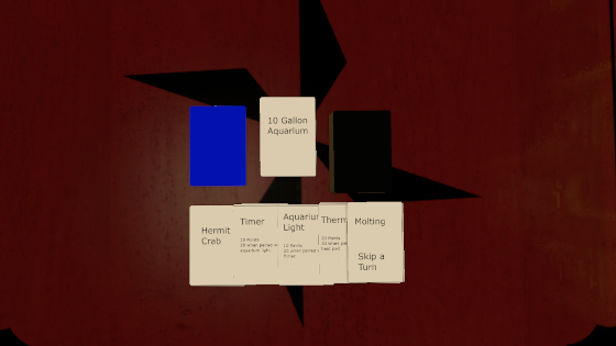 - Designed a game around two core design pillars, fast paced party game, and proper hermit crab care.