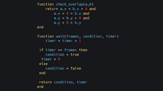 The collision system used a simple rectangular overlap check, comparing the x and y bounds of two objects and returning a true or false result. The delay function I created accepted a frame duration, a condition, and a timer variable. The timer would increment each frame and, once it reached the specified duration, the condition would trigger, allowing me to control timed behaviors throughout the game.